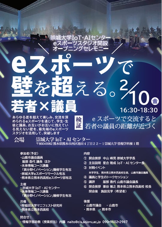 【お知らせ】崇城大学IoT・AIセンター eスポーツスタジオ開設オープニングセレモニー