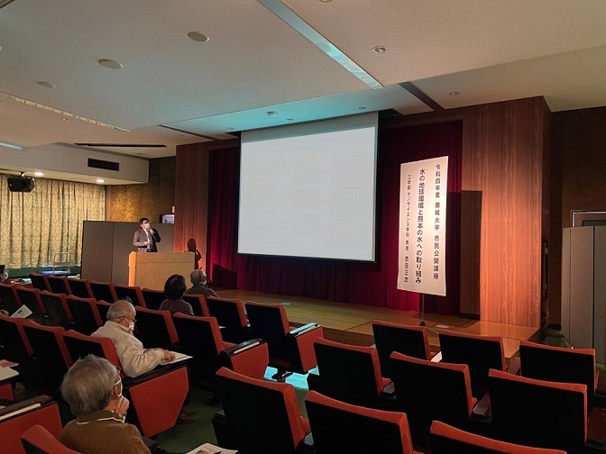 2022/12/09 【市民公開講座】ナノサイエンス学科 西田 正志 教授の講座が開催!(12/6 実施) 企業・一般の方へ 12月6日(火)、本館6階学術講演会室において、本学主催の市民公開講座(第6回)を開催しました。 42名の方が受講されました。 今回のテーマは「水の地球環境と熊本の水への取り組み」と題し、ナノサイエンス(化学)の特徴や、 水の仕組みなどについて解説いただきました。 第6回をもちまして、令和4年度市民公開講座は全日程を終了いたしました。 受講された皆様、ありがとうございました。 第6回の講座の様子 お知らせ一覧へ戻る 前の記事へ 次の記事へ