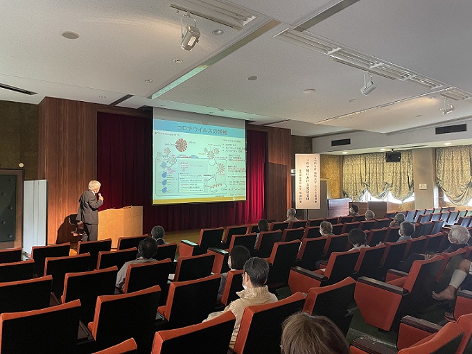 今回のテーマは「コロナ禍における健康管理」と題し、薬学部 薬学科 横溝教授にCOVID-19コロナウイルスの増殖の仕組みや感染対策などについて解説いただきました。