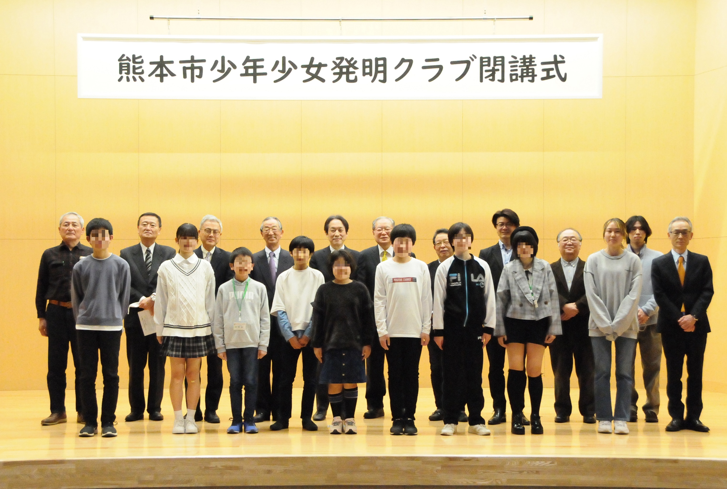 2023/03/28 令和4年度「熊本市少年少女発明クラブ」閉講式 企業・一般の方へ 3月11日(土)に令和4年度熊本市少年少女発明クラブ閉講式が本学SoLAホールで行われました。 新規生コース51名、深堀コース11名、アイデア発明コース13名、帯山サテライトコース27名の合計102名が今年度の活動を修了しました。 今年度は第57回熊本県発明工夫展において、当クラブアイデア発明コースから3名入賞し、その中から熊本県発明協会会長賞を受賞した松田さんがプレゼン発表を行いました。 アイデア発明コース 集合写真 修了証書 授与の様子 松田さんのプレゼン発表の様子 お知らせ一覧へ戻る 前の記事へ 次の記事へ