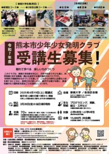 本学が協力を行っている熊本市少年少女発明クラブより、令和7年度新規生募集のお知らせがございました。