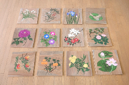 熊本市西区の釜尾古墳横に建立されている釜尾神社の天井画の修復を行いました。描かれていたものは身近な花や植物。明治時代に描かれたもので、老朽化により絵具の剥落も著しく、原型が不明のものもありましたが、当時描かれた状態に再現しました。
